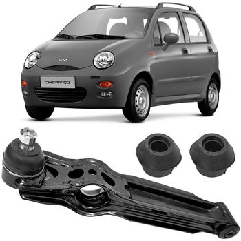 Bandeja Balança Inferior Chery QQ 1.1 16V 2011 a 2018 Com Pivô e Bucha Perfect